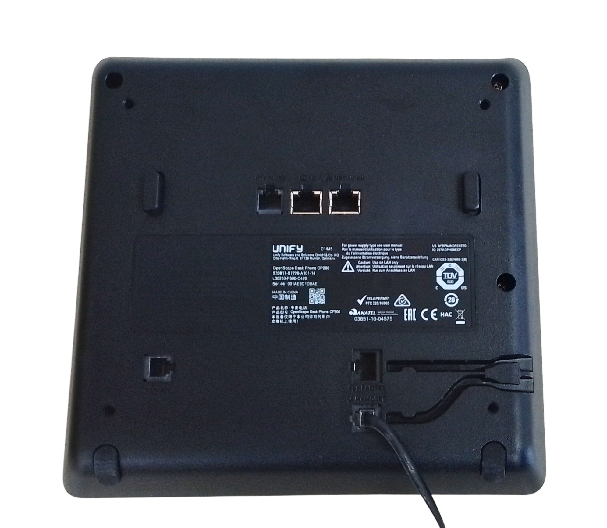 - 8 feste Funktionstasten, davon 3 mit LED (rot oder grün): Halten, Übergabe, Konferenz, Einstellungen, Nachrichten